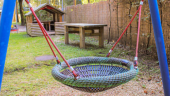 Für Aktivitäten im Freien nutzen wir unseren großzügig angelegten Garten mit großem Sandkasten, der direkt hinter dem Gebäude liegt. Außerdem unternehmen wir häufig Ausflüge in den nahegelegenen Ostpark, um gemeinsam die Natur zu erkunden, zu picknicken oder Bewegungsspiele durchzuführen.