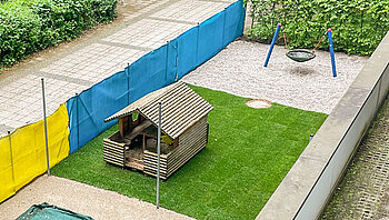 Für Aktivitäten im Freien nutzen wir unseren großzügig angelegten Garten mit großem Sandkasten, der direkt hinter dem Gebäude liegt. Außerdem unternehmen wir häufig Ausflüge in den nahegelegenen Ostpark, um gemeinsam die Natur zu erkunden, zu picknicken oder Bewegungsspiele durchzuführen.